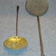 Oval tray in good condition, painted black with gold design at edge, 18″ by 22″