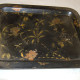 A very old tray with handles, about 15″ by 24″. The finish is so old I cannot tell if the tray is brass or copper silverplate. I am certain it is not steel, aluminum, or pewter, or lead. I can only guess that it is heavy copper with riveted brass handles and it has been an amateur silverplate experiment. Not a nice shiny use with your best china tray, but really interesting and really old. Can be seen at Antique Center I, Murfreesboro, Tn.
