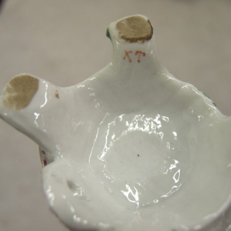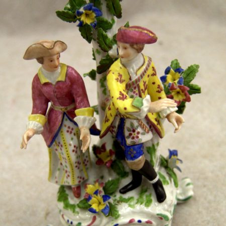 Well detailed and well painted figurine of young couple. Sits 7″ tall, has simple red mark on bottom. Really good condition for its age with small fingertip damage. Can be seen at Antique Center I, Murfreesboro, Tn.